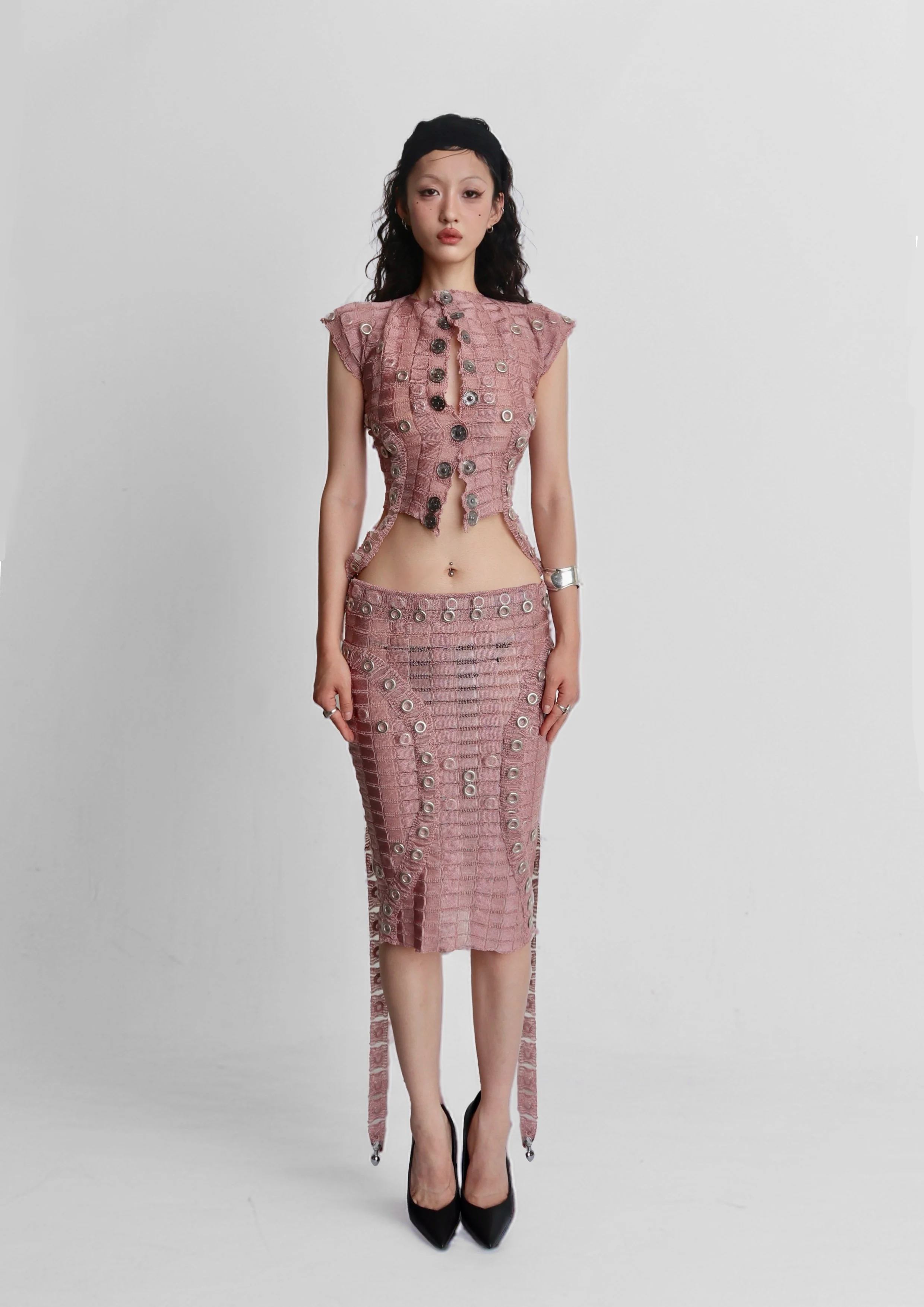 Categories: All Accessories Customization All | Accessories | Customization | The "Ahh" Metal Pearls Transparent Beading Face Dress £520.00 The "Yahh" Bandeau and Asymmetric skirt £680.00 (Pre-order) The "Uhh" Two-piece Eyelets Bondage Top and Skirt £480.00 Golden Medallion Solar Mesh Choker £160.00 Bondage Eyelets Multi-Wearing Belt £80.00 Golden Medallion Solar Choker £80.00 Customised Garments £9,999.00 Lending/Press Loan Deposit £30.00